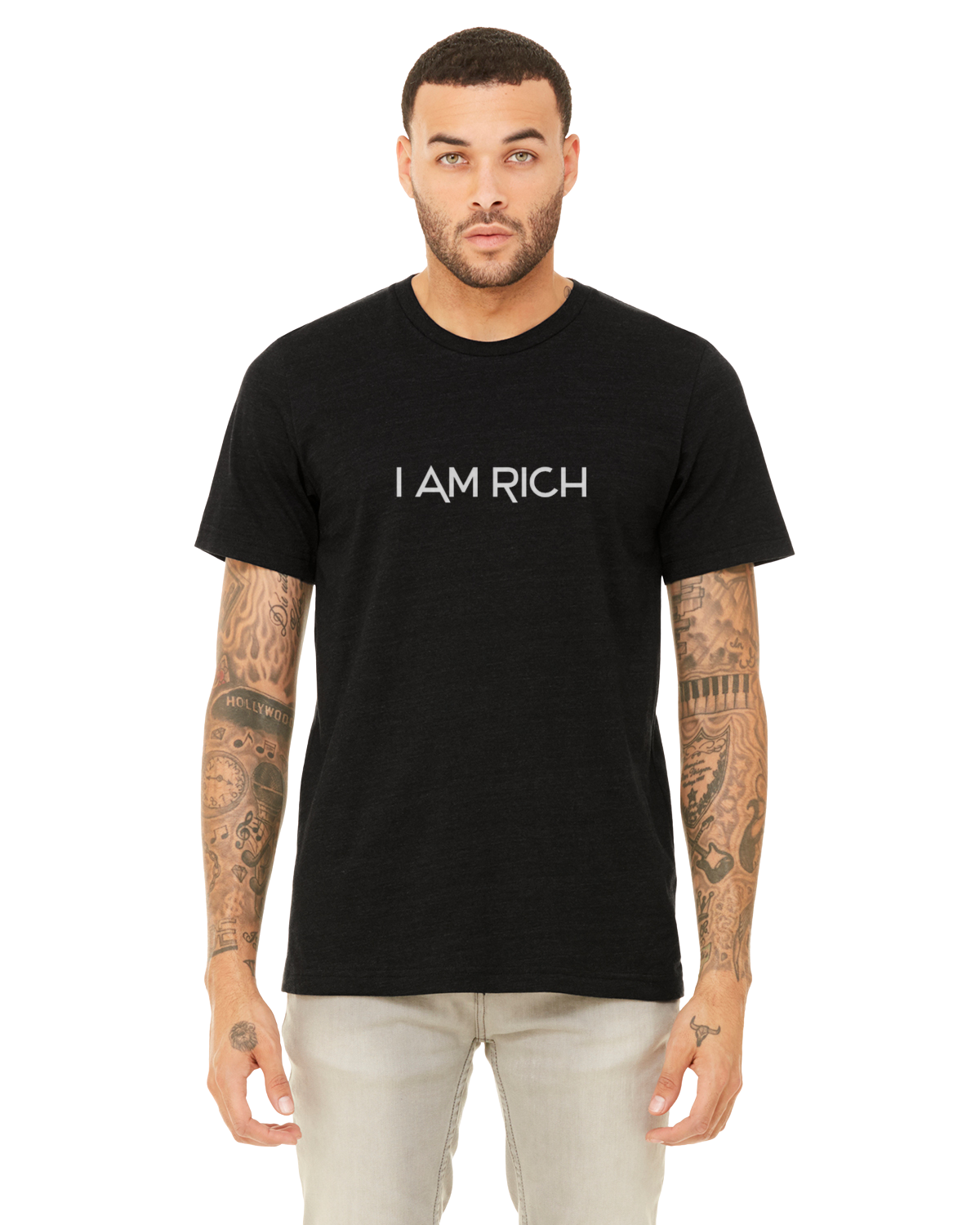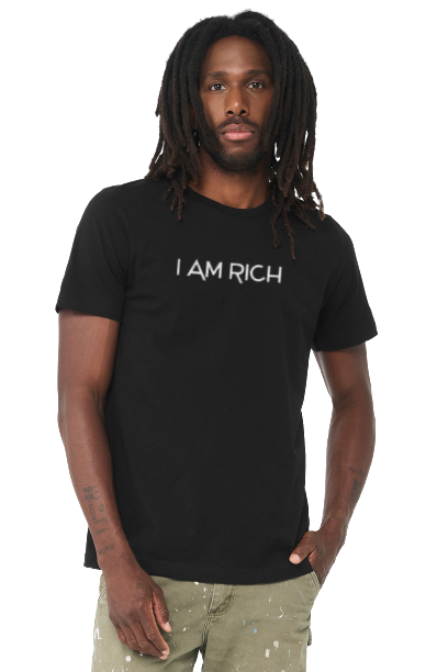 There is a moment when the subconscious begins to shift—not through trying, not through forcing, but through consistent symbolic reinforcement. The I Am Rich shirt functions as daily hypnosis in motion. A wearable affirmation. A declaration that whispers to your nervous system, “This is who we are now.”